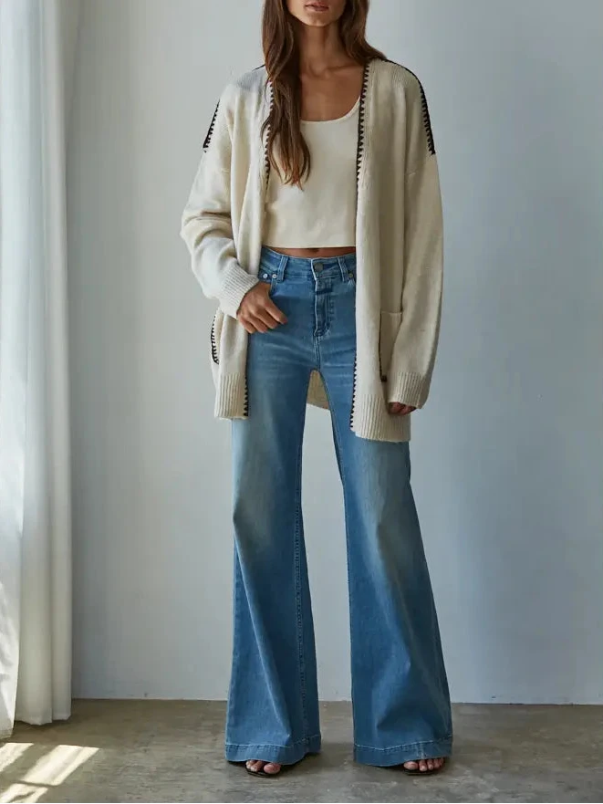 Cream (Black Binded) Terry Rib Added Coverage Lulu Bikini Bottom
