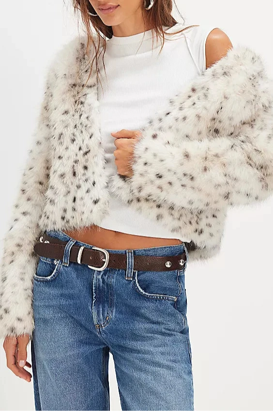 Louder Please Hooded Faux Fur Jacket-Snow Leopard