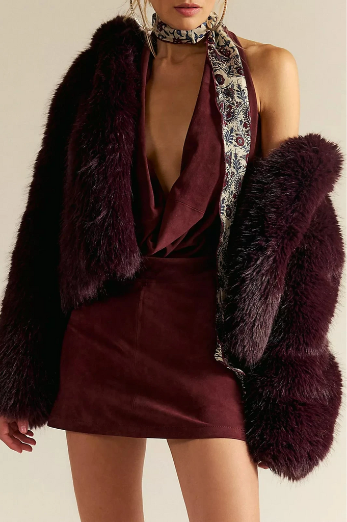 Louder Please Hooded Faux Fur Jacket-Grape