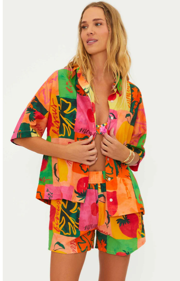 Multi Contrast Smocked Bodice and Bow Tie Straps Maxi Dress