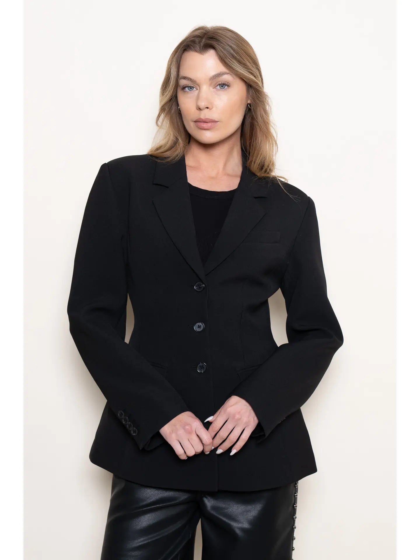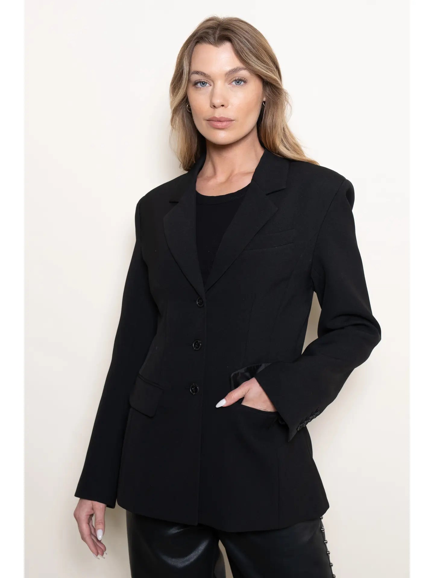 Classic Preppy Chic Fitted Long Blazer Timeless meets trendy in this elevated fitted long blazer a boutique essential for layering sophistication into any wardrobe. Designed with a structured silhouette, it features a flattering V-neckline, classic collar, long sleeves, and a sleek button-down front. The tailored fit adds polish to both casual and office-ready looks, making it a versatile piece your customers will love. Perfect for fall layering or year-round styling, this preppy-chic blazer blends classic elegance with modern edge. A top-seller for boutiques seeking elevated basics with premium appeal. Stock now and boost your sales!