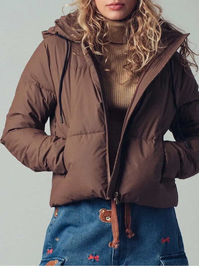 Ballon Sleeve Twill Jacket Drawstring Waist