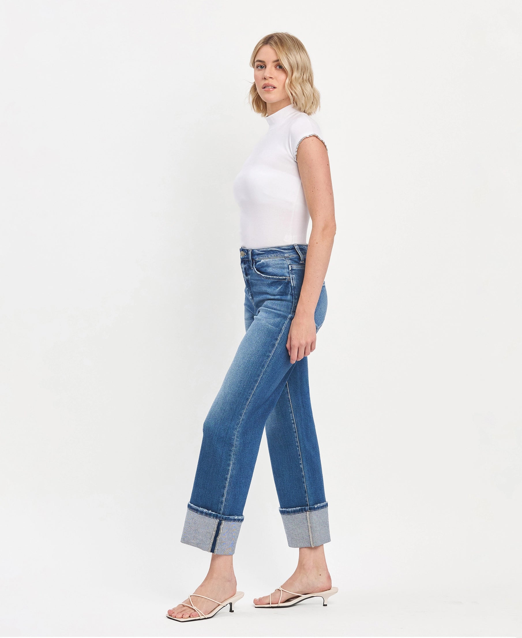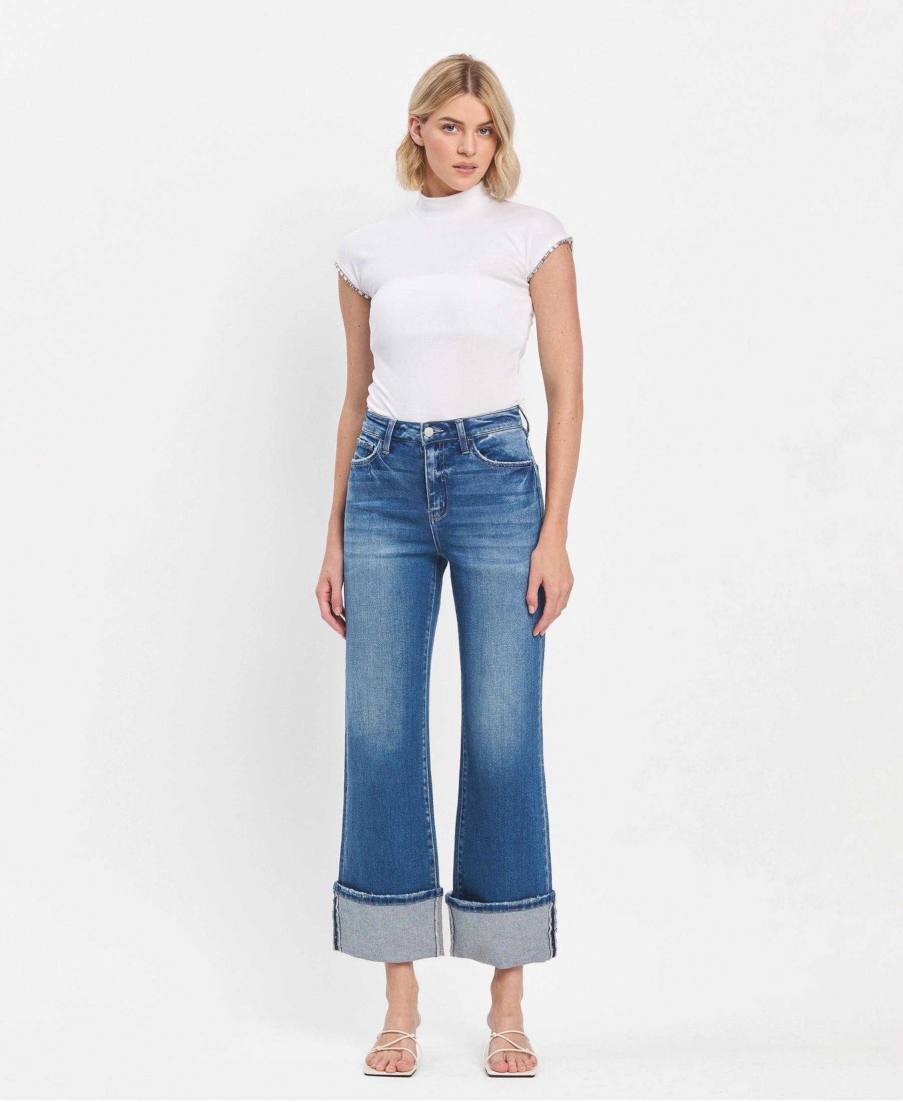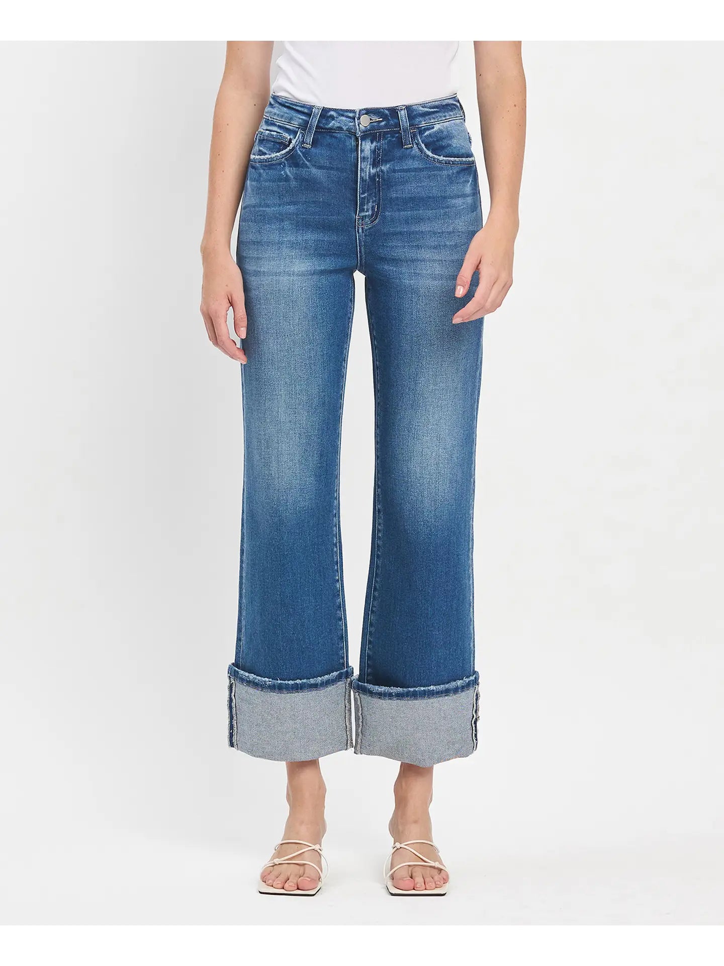90's Vintage Super High Rise Cuffed Flare Jeans - Blue Fairy / 24 is backordered and will ship as soon as it is back in stock.