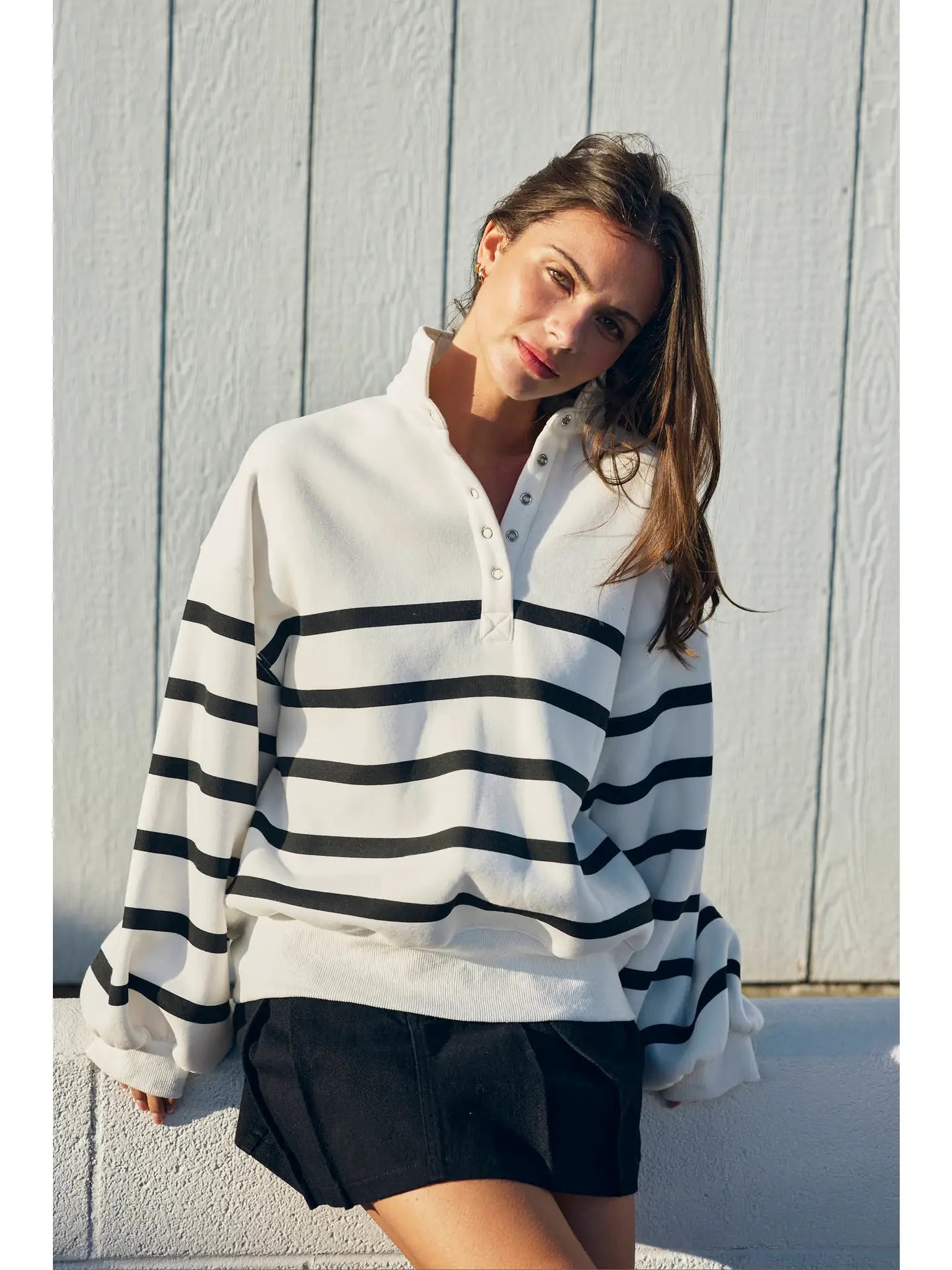 -Relaxed Fit Model's height is 5'7" and wearing a size S