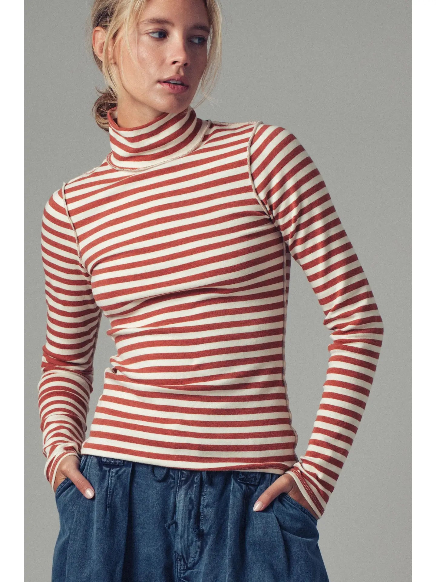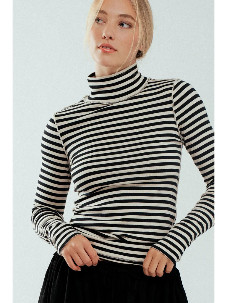 Contrast Seam Turtleneck Knit Top