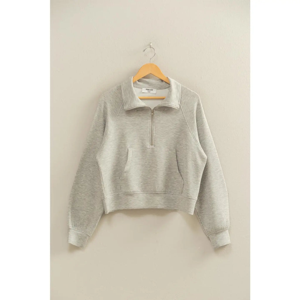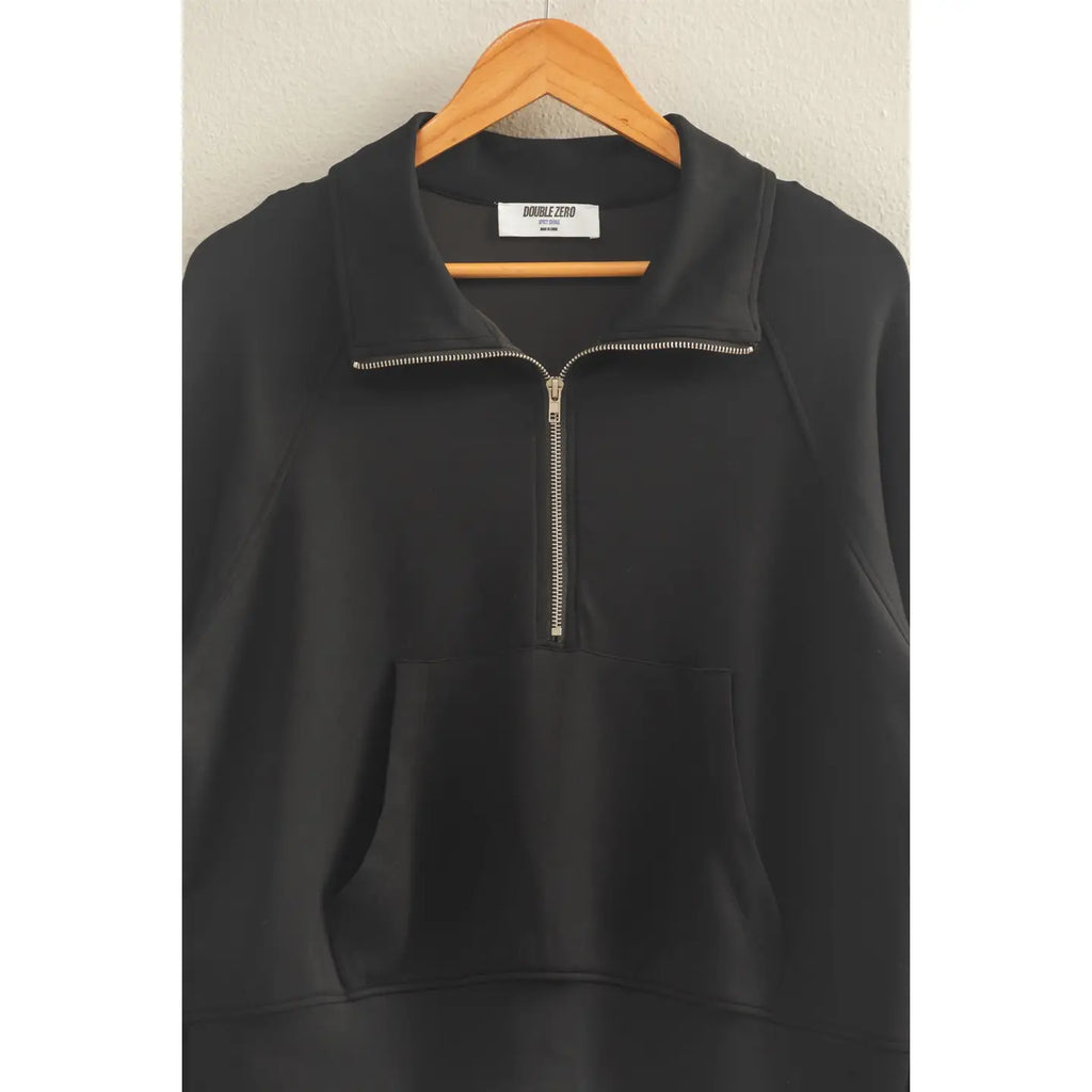 Double Knit Half Zip-Up High Neck Collar Sweatshirt