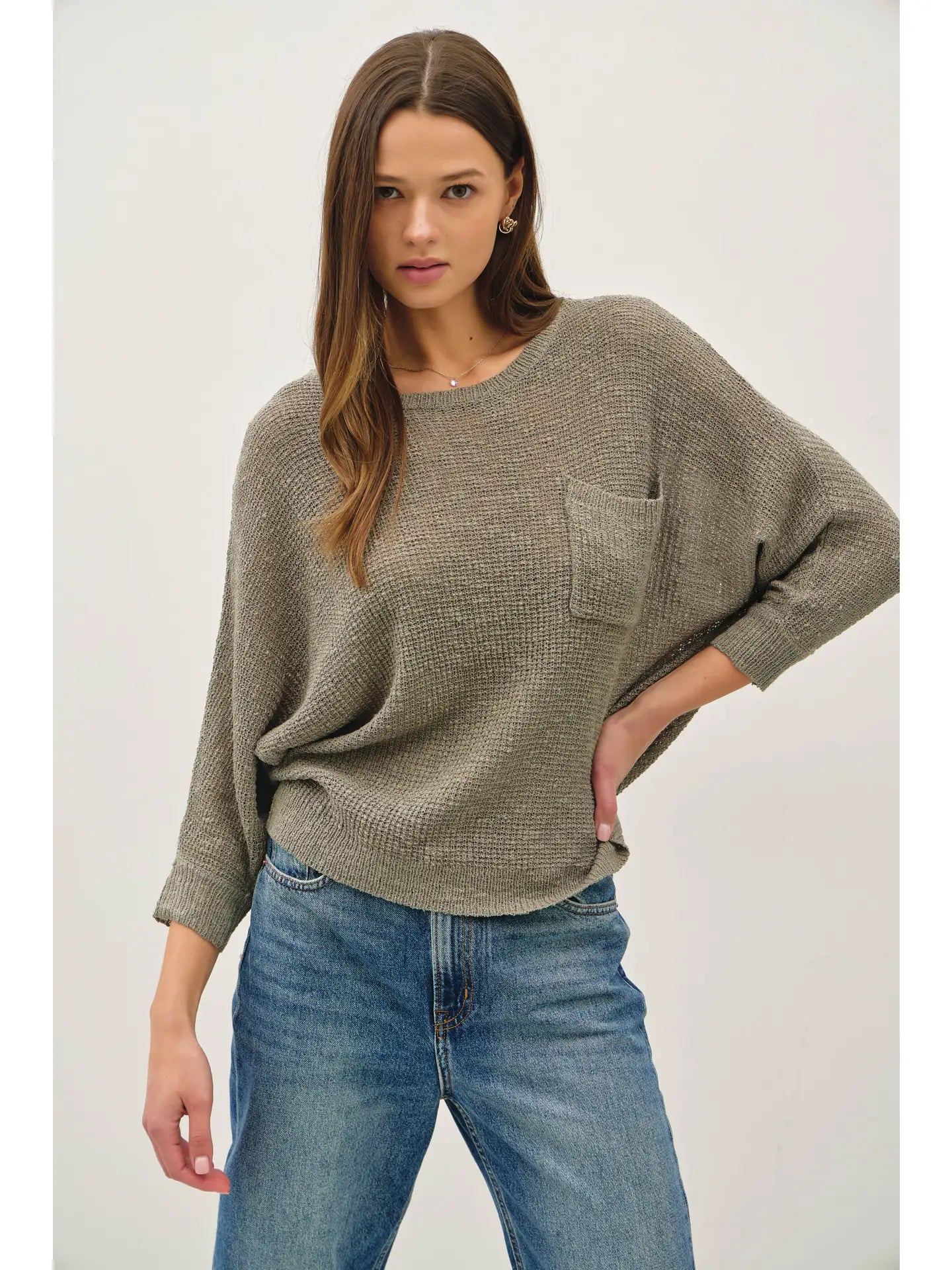 Front Pocket Dolman Long Sleeve Knit Sweater
