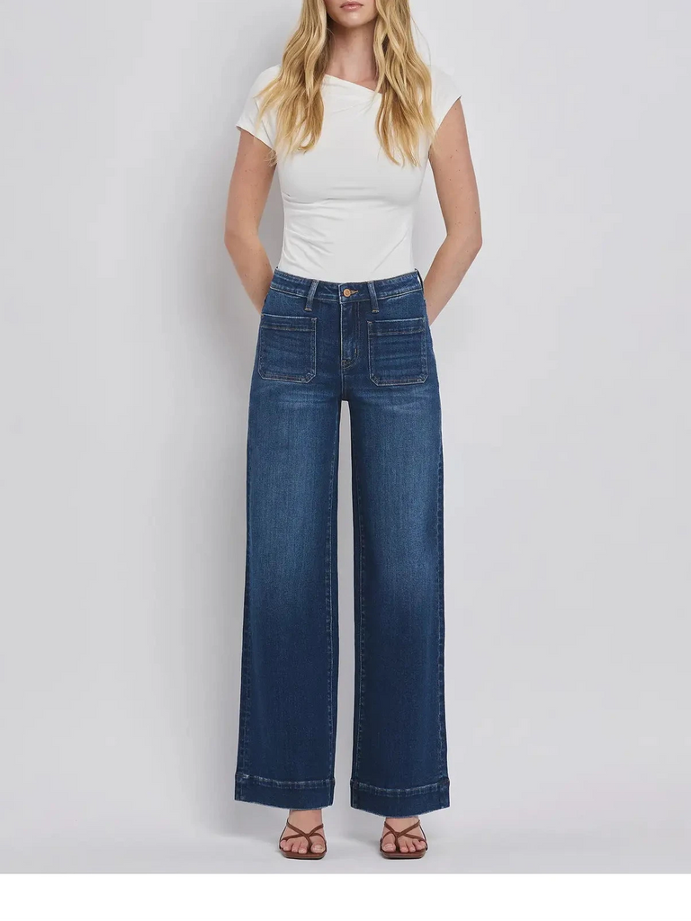 High Rise Front Patch Pocket Wide Trouser