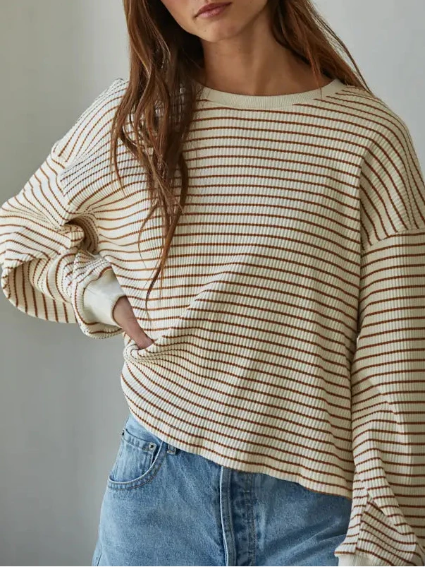 - Knit striped long sleeve top
