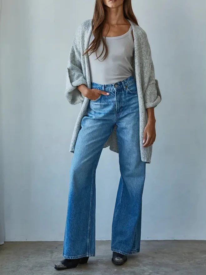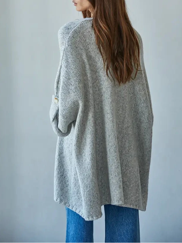 Knit Folded Quarter Sleeve Open Front Cardigan