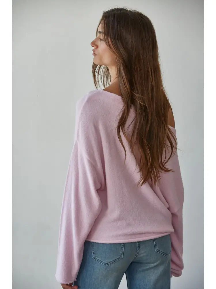 Knit Sweater Boat Neck Long Sleeve Pullover - Pink / S is backordered and will ship as soon as it is back in stock.