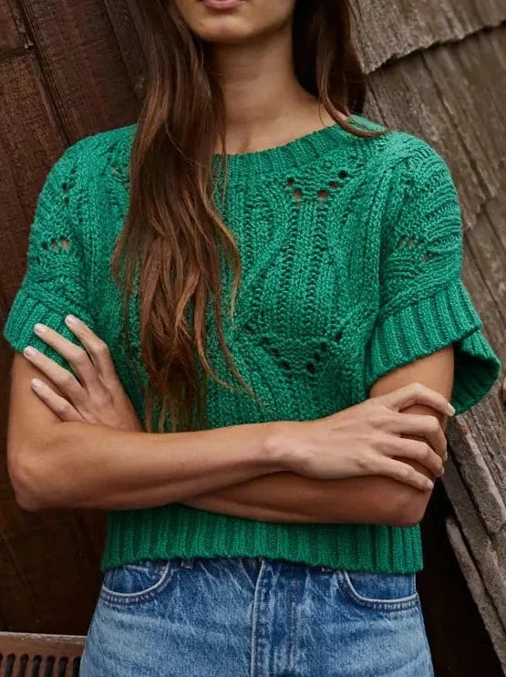 Knit Sweater Crochet Round Neck Short Sleeve Top
