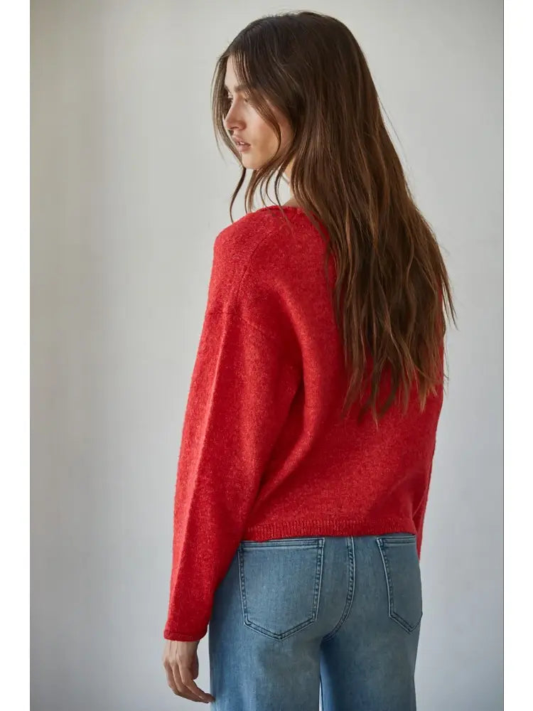 Knit Sweater Rolled V Neck Long Sleeve Cardigan