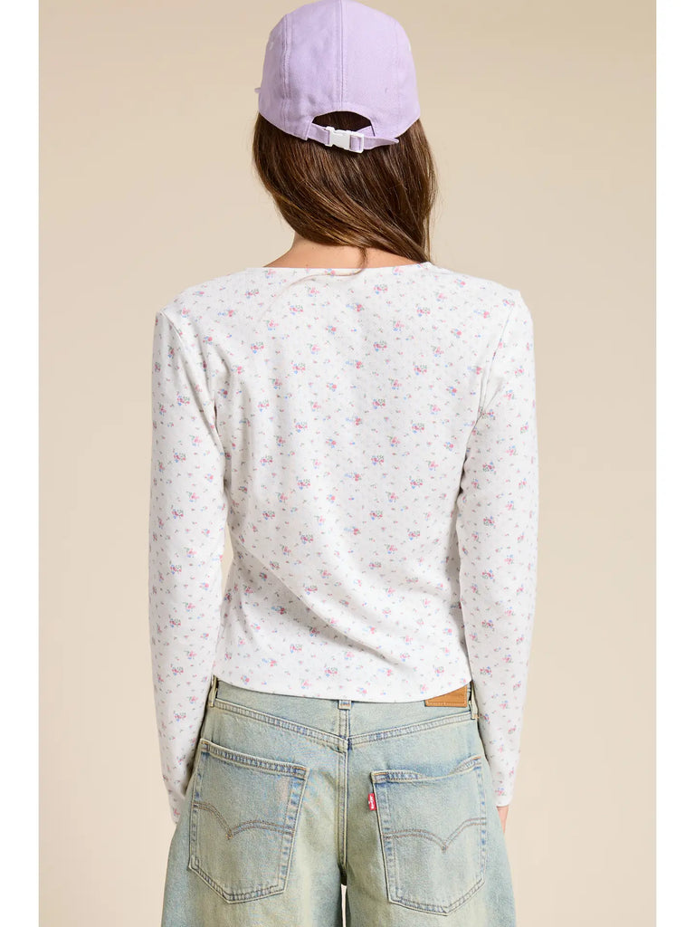 Long-Sleeve Floral Print Pointelle Knit Cardigan