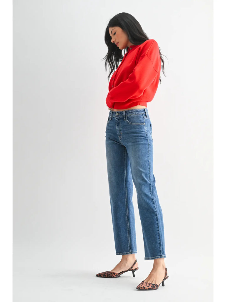 9.5'' RISE, 28'' INSEAM, 8.5'' OPENING Medium Denim - Mid Rise Slim Wide Leg