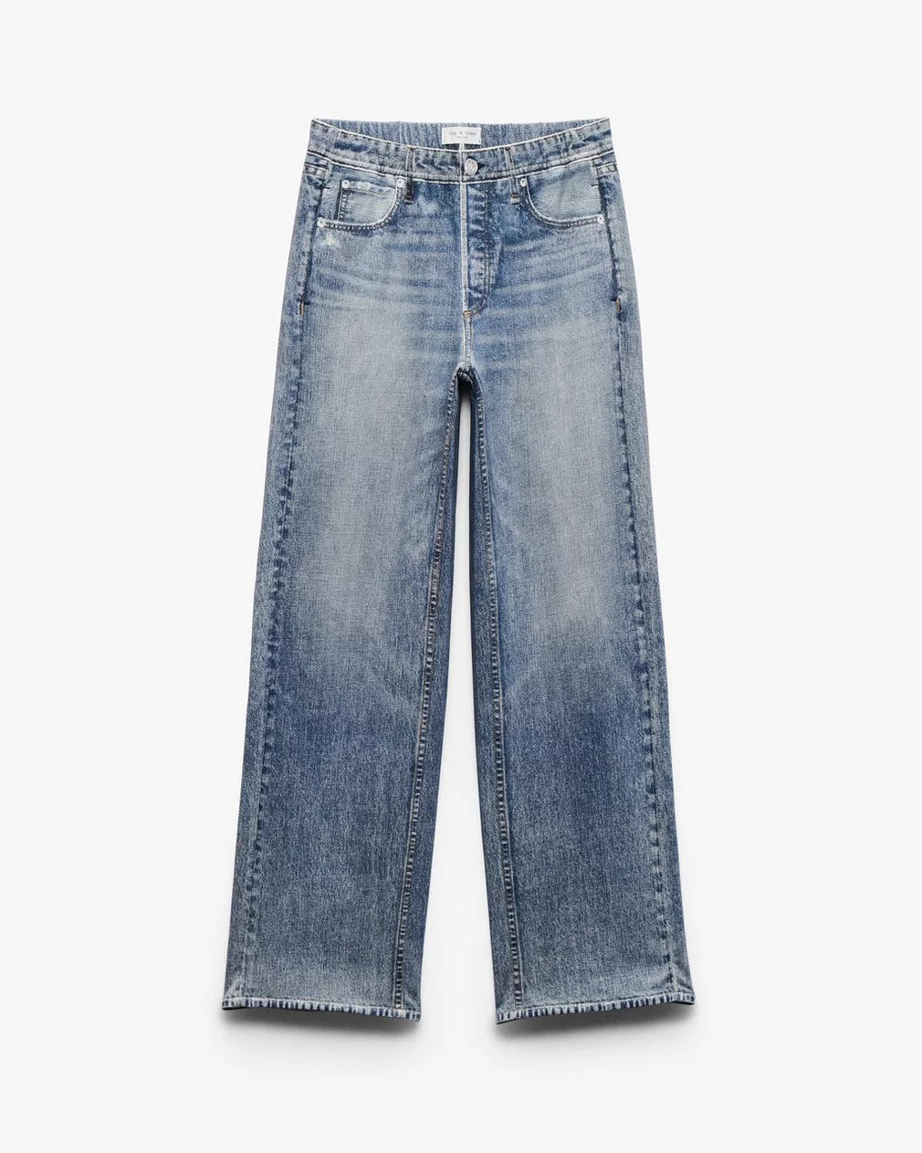 • Mid-rise, full-length wide leg