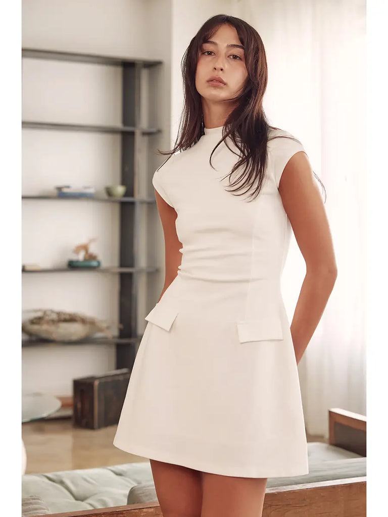 RETRO VINTAGE MOCK NECK CAP SLEEVE MINI DRESS