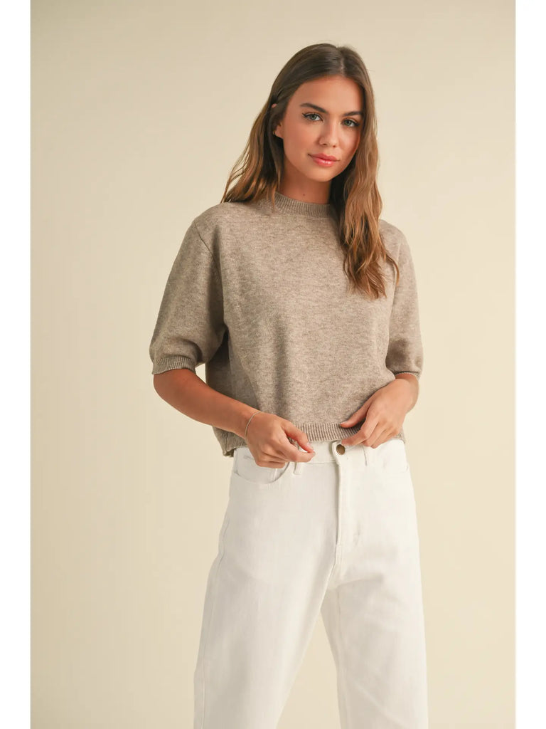 Short Sleeve Sweater Top - Mocha / S is backordered and will ship as soon as it is back in stock.